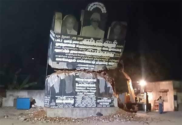 காஞ்சிபுரம் மாவட்டம் ஓரிக்கையில் நள்ளிரவில் இடிக்கப்பட்ட அ.தி.மு.க., கல்வெட்டு