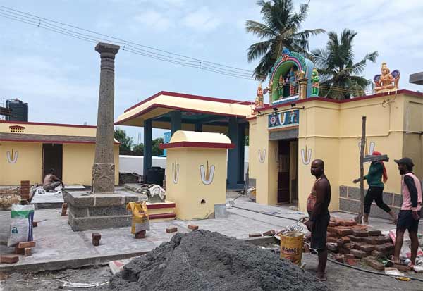அரும்புலியூர், வைகுண்டவாச பெருமாள் கோவிலில், 15 ஆண்டுகளுக்கு பின், மஹா கும்பாபிஷேகம் நடைபெற உள்ளதால் கோவில் புனரமைப்பு பணி நடந்து வருகிறது.