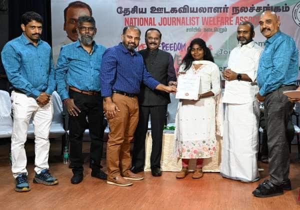 தேசிய ஊடகவியலாளர் நலச் சங்கம் சார்பில் நடந்த பத்திரிக்கையாளர் சுதந்திரம் குறித்த கருத்தரங்கில், நேஷனல் இன்ஸ்டிட்யூட் ஆப் ஜர்னலிசம் மையத்தில் ஊடகவியல் டிப்ளமோ படித்த மாணவர்களுக்கு சான்றிதழ்களை சிறப்பு விருந்தினரான தினமலர் இணை இயக்குநர் லட்சுமிபதி வழங்கினார். உடன் இடமிருந்து தேசிய ஊடகவியலாளர் நலச் சங்க துணைத் தலைவர் வெங்கடேசன், அமைப்பு செயலர் பன்னீர் செல்வம், நியூஸ் 7 தமிழ் மூத்த ஆலோசகர் ஷ்யாம் குமார், மத்திய தகவல் மற்றும் ஒளிபரப்புத்துறை இணை அமைச்சர் முருகன், தேசிய ஊடகவியலாளர் நலச் சங்க நிறுவனர் ஜெயகிருஷ்ணன். இடம் : ஆழ்வார்பேட்டை.