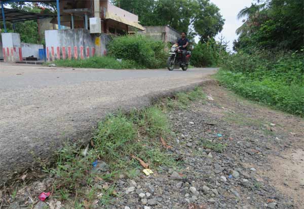 காஞ்சிபுரம் தாட்டித் தோப்பு சாலையோரம் ஏற்பட்ட பள்ளத்தை மண் கொட்டி சீரமைக்க வாகன ஓட்டிகள் வலியுறுத்தி வருகின்றனர்.
