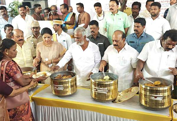 பக்தர்களுக்கு நாள் முழுதும் பிரசாதம் வழங்கும் திட்டம், மாங்காடு காமாட்சி அம்மன் கோவில், நங்கநல்லுார் ஆஞ்சநேயர் கோவில், பழனி முருகன் கோவில், பெரியபாளையம் பவானி அம்மன் கோவில், திருவொற்றியூர் வடிவுடையம்மன் கோவில் ஆகிய ஐந்து கோவில்களில் துவங்கியது.