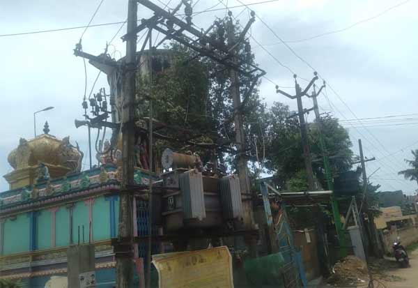 ஜல்லடியன்பேட்டையில், கோவிலை ஒட்டி அமைந்துள்ள மின்மாற்றியால், பக்தர்கள் பீதியுடன் வழிபாடு செய்து வருகின்றனர்.