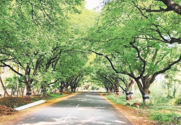 சின்னமனூர் மார்க்கையன் கோட்டை ரோட்டில் செழித்து வளர்ந்துள்ள மரங்கள்