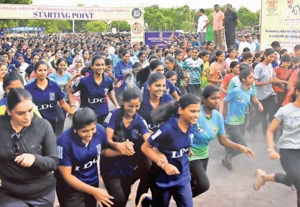 மதுரை ஆயுதப்படை மைதானத்தில் போதைக்கு எதிரான விழிப்புணர்வு மராத்தான் நடந்தது.