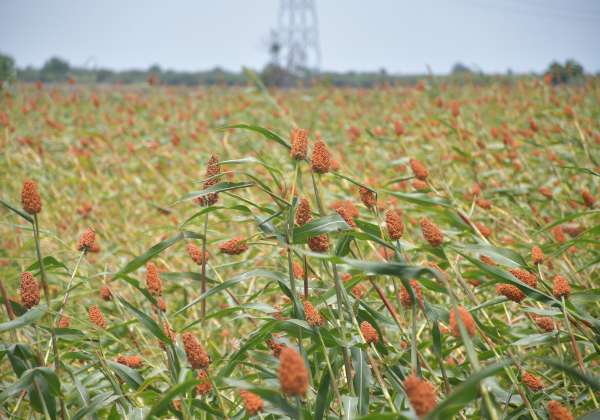 விருதுநகர் அருகே செங்குன்றாபுரத்தில் பயிரிடப்பட்டுள்ள சோளப் பயிர்கள்.