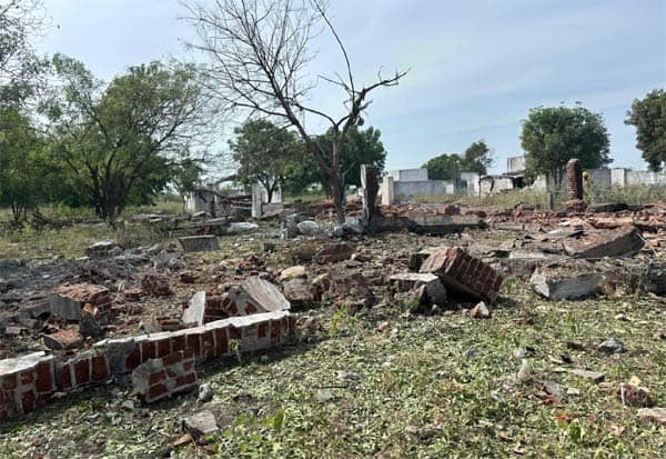சிவகாசி அருகே வி சொக்கலிங்கபுரத்தில் உள்ள பட்டாசு ஆலையில் வெடி விபத்து ஏற்பட்டது. இதில் 7 பேர் உயிரிழந்தனர். விபத்தில் தரைமட்டமான பட்டாசு தயாரிக்கும் அறைகள்.