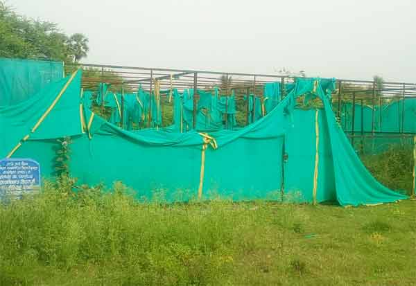 நாற்றங்கால் வளர்ப்பு பசுமை குடில் வலை கிழிந்து சேதமடைந்து உள்ளது. இடம்: திருப்புலிவனம்.