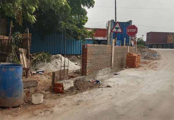 ஊராட்சிக்கு சொந்தமான அரசு நிலத்தை தனி நபர்கள் ஆக்கிரமித்து சுற்றுச்சுவர் எழுப்பி வருகின்றனர். இடம்: அத்திப்பட்டு புது நகர்.