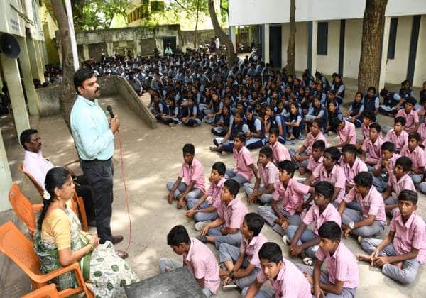 விழுப்புரம் கீழ்பெரும்பாக்கம் அரசு மேல்நிலைப் பள்ளியில் போதைப் பொருள் விழிப்புணர்வு நிகழ்ச்சியில் மாவட்ட மனநல மருத்துவர் ஆனந்தராஜ் பேசினார்.