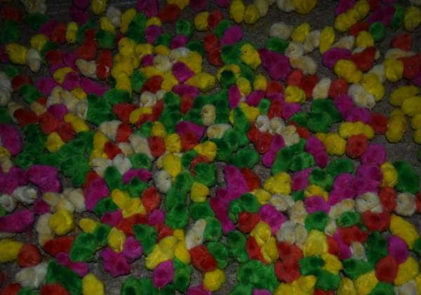 வண்ண வண்ணமான கோழி குஞ்சுகள், கோவை சித்தாப்புதூர் அருகே விற்பனைக்கு வைக்கப்பட்டுள்ளது.