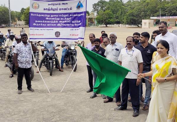 காஞ்சிபுரம் கலெக்டர் வளாகத்தில் தலை கவசம் குறித்த விழிப்புணர்வு பேரணியை கலெக்டர் கலைச்செல்வி துவக்கி வைத்தார்.
