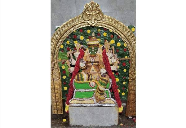 திருப்போரூரில் ஸ்ரீ சொர்ண வராஹி அம்மன் கோவிலில் நவதானிய அலங்காரத்தில் அம்மன் அருள்பாலித்தார்.