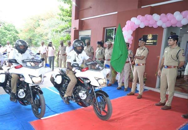 போக்குவரத்து நெரிசலை கட்டுப்படுத்த தாம்பரம் போலீஸ் கமிஷனரகத்தில் 26 டிராபிக் மார்ஷல் இரு சக்கர வாகனங்களை போலீஸ் கமிஷனர் அபின் தினேஷ் மோதக் துவக்கி வைத்தார். இடம்: குரோம்பேட்டை
