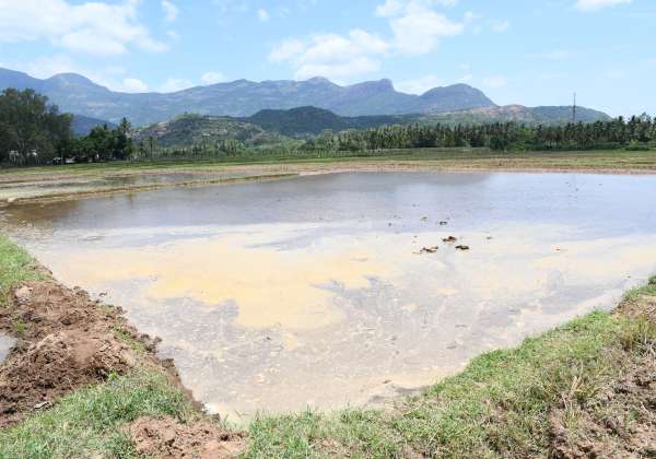 நெல் நாற்று நடவு செய்வதற்காக விவசாயிகள் வயல்களில் தண்ணீர் தேக்கி வைத்துள்ளர்.இடம்.உடுமலை கரட்டுப்பதி .