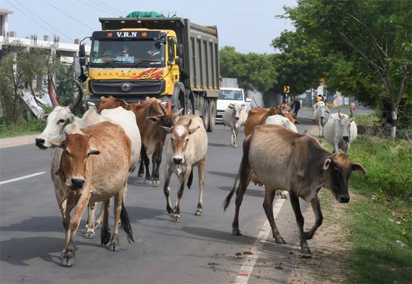 திருவள்ளூர்-ஊத்துக்கோட்டை ஐ.சி.எம்.ஆர். அருகே சாலையில் உலா வரும் மாடுகளால் வாகன ஓட்டிகள் சிரமப்படுகின்றனர்.