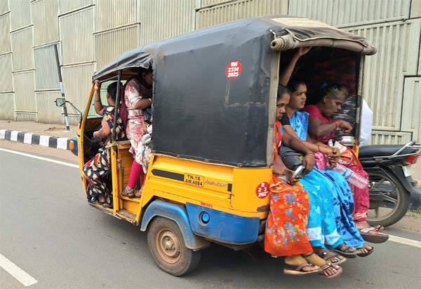 கும்மிடிப்பூண்டி சிப்காட் வளாகத்திற்கு பேருந்து வசதி இல்லாததால் அளவுக்கு அதிகமாக ஷேர் ஆட்டோக்களில் ஆபத்தாக பயணிக்கும் பெண் தொழிலாளர்கள்.