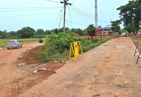 கும்மிடிப்பூண்டி, அருகே ஈகுவார்பாளையம் கிராமத்தில் பால பணிகள் நடக்கும் இடத்தில் சாலையின் குறுக்கே தடுப்புகள் இன்றி ஆபத்தாக உள்ளது.