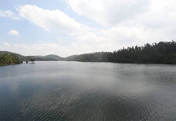 இடுக்கி அணையின் ஒரு பகுதியான செருதோணி அணையில் ஒரு புறம் தண்ணீரும், அதற்கு ஏற்ப மறுபுறம் மேகங்கள் சூழ்ந்தும் ரம்மியமாக காட்சி அளிக்கிறது.