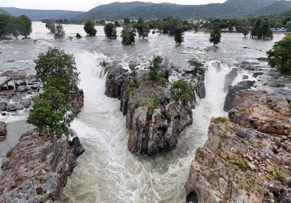 கர்நாடகாவிலிருந்து கரைபுரண்டு ஓடி வரும் காவிரி ஆற்றின் அழகு. இடம்: தருமபுரி மாவட்டம் ஒகேனக்கல் பகுதி.