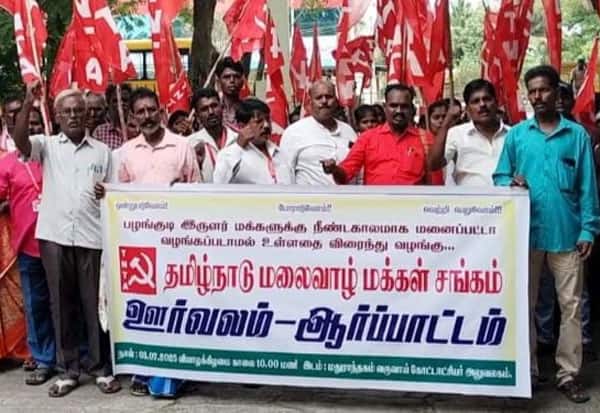 இருளர்களுக்கு வீட்டுமனை பட்டா வழங்க கோரி, தமிழ்நாடு மலைவாழ் மக்கள் சங்கத்தினர், மதுராந்தகம் வருவாய் கோட்டாட்சியர் அலுவலகத்தில் முற்றுகை போராட்டம் நடத்தினர்.