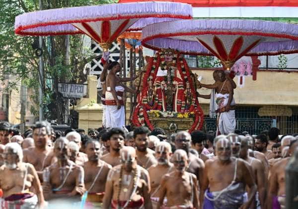 சென்னை திருவல்லிக்கேணி பார்த்தசாரதி கோவில் நரசிம்ம சுவாமி பிரம்மோற்சவ விழாவில் முதல் முதல் நாளான இன்று தர்மாதி பீடத்தில் வீதி உலா வந்து பக்தர்களுக்கு அருள் பாலித்தார்.
