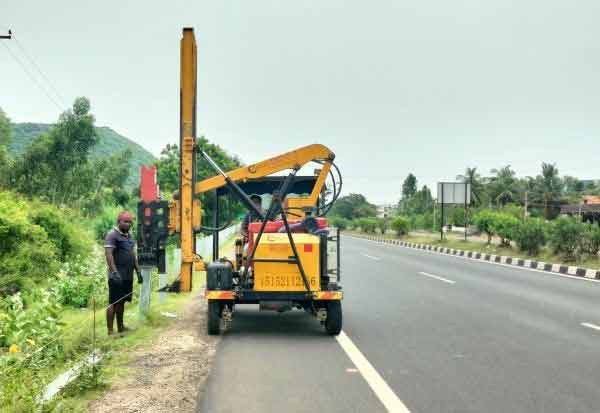 தேசிய நெடுஞ்சாலை ஓரத்தில் விபத்தை தடுக்கும் வகையில அமைக்கப்படும் இரும்பு தடுப்புகள். இடம்: அச்சிறுப்பாக்கம்.