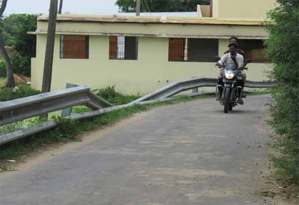 கீழம்பி சாலையோரம் சேதமடைந்துள்ள தடுப்பு.