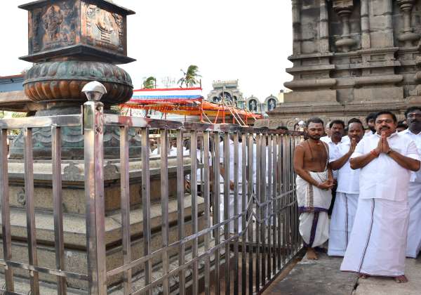 சென்னை திருவொற்றியூர் தியாகராஜசுவாமி உடனுறை வடிவுடை அம்மன் கோவிலில்அ.தி.மு.க பொதுச்செயலாளர் பழனிசாமி சுவாமி தரிசனம் செய்தார். உடன் எம் எல் ஏ குப்பன்.