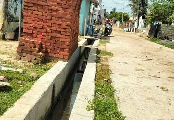 ராஜபத்மாபுரம் கிராமத்தில் கழிவுநீர் கால்வாய் திறந்தநிலையில் இருப்பதால், விபத்து அச்சத்தில் மக்கள் தவித்து வருகின்றனர்.