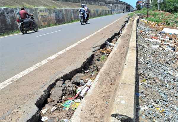 சென்னை -கோல்கட்டா தேசிய நெடுஞ்சாலையில் தச்சூர் பகுதியில் உள்ள இணைப்பு சாலையில் ஏற்பட்டுள்ள பிளவால் சாலை சரிந்து பள்ளத்தில் விழும் அபாயம் ஏற்பட்டுள்ளது.