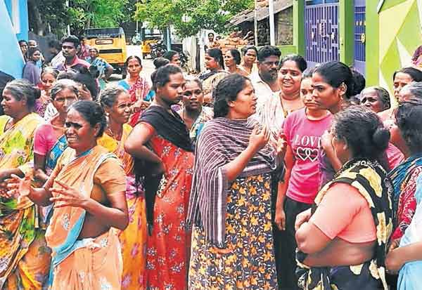 ஒடிசா மாநிலத்தில் இறந்த வாலிபரின் உறவினர்கள் சோகமாக கூடி நிற்கின்றனர். இடம்: புல்லரம்பாக்கம்.