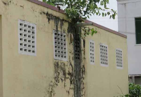 காஞ்சிபுரம் ஓரிக்கையில் உள்ள மாநகராட்சி பொது கழிப்பறை கட்டட சுவரில் வளர்ந்துள்ள அரச செடியை வேருடன் அகற்ற வேண்டும் என, கோரிக்கை எழுந்துள்ளது.