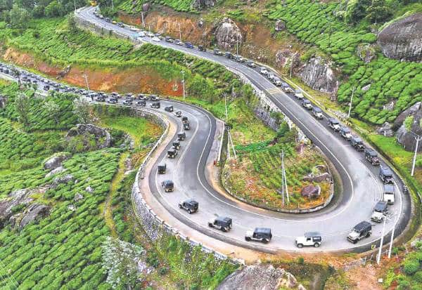 கொழுக்கு மலையில் அதிகாரிகள் அனுமதிக்காக காத்திருக்கும் ஜீப்கள்