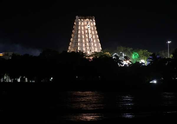 திருச்செந்தூர் சுப்பிரமணிய சுவாமி கோவில் கும்பாபிஷேகம் நாளை ( 7 ஆம் தேதி) நடக்கவுள்ள நிலையில் மின் விளக்குகளால் அலங்கரிக்கப்பட்டுள்ளது.