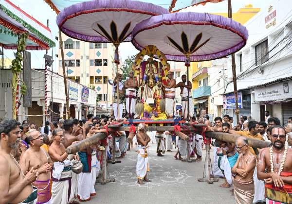 சென்னை திருவல்லிக்கேணி பார்த்தசாரதி கோவில் நரசிம்ம சுவாமி பிரம்மோற்சவ விழாவில் மூன்றாம் நாளில் கருட வாகனத்தில் நரசிம்ம ஸ்வாமி வீதி உலா வந்து பக்தர்களுக்கு அருள் பாலித்தார்.