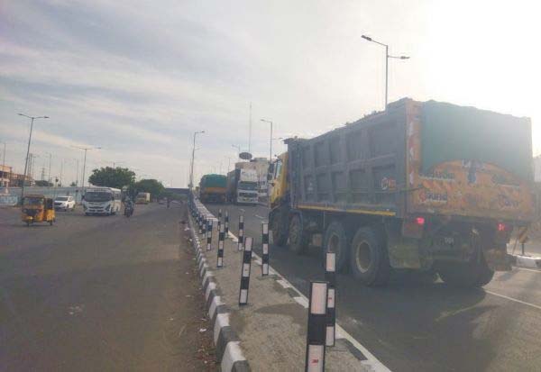 சிங்கபெருமாள்கோவில் மேம்பாலத்தில் அபாயகரமாக எதிர் திசையில் செல்லும் மண் லாரிகள்.