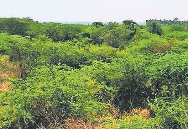 திருவாலங்காடு ஒன்றியம் ஆற்காடுகுப்பம் கொசஸ்தலையாற்றில் காடு போல வளர்ந்துள்ள கருவேல் மரங்கள்.