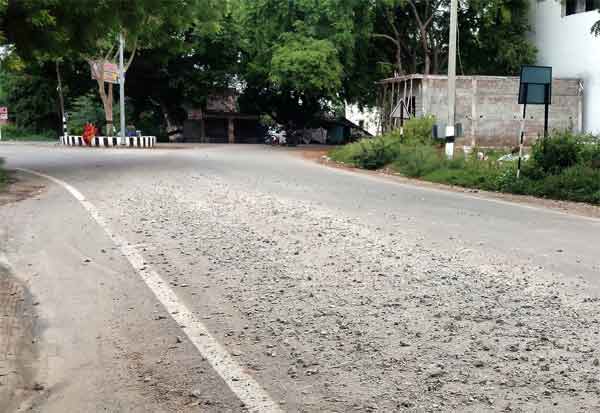 குவாரிகளுக்கு வந்து செல்லும் டாரஸ் லாரிகள், வேகத்தடைகளை அலட்சியமாக கடந்து செல்வதால், சாலையில் சிதறி கிடக்கும் ஜல்லிக் கற்கள். இடம்: நீதிமன்றம் அருகே, பள்ளிப்பட்டு.