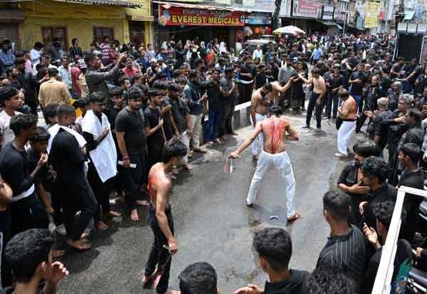 மொஹரத்தை முன்னிட்டு ராயப்பேட்டை பகுதியில் ஷியா முஸ்லிம்களின் கத்தி போடும் பேரணி நடந்தது.
