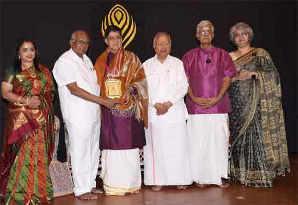 கிருஷ்ண கான சபா சார்பில் நடந்த நாடக விழாவின் நிறைவு நாளான நேற்று முன்தினம், நாடக நடிகர் டி.வி.வரதராஜனுக்கு 'நாடக சூடாமணி' விருதை வழங்கி, பிரபல திரைப்பட இயக்குநர் எஸ்.பி.முத்துராமன் கவுரவித்தார். உடன், இடமிருந்து வலம்: நாடகக் கலைஞர் லாவண்யா, கிருஷ்ண கான சபாவின் தலைவர் நல்லி குப்புசாமி, செயலர் ஒய்.பிரபு, முதன்மை செயல் அலுவலர் சாஷ்வதி பிரபு. இடம்: தி.நகர்.