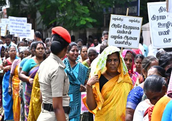 புதுச்சேரி மாநில நகராட்சி மற்றும் கொம்யூன் பஞ்சாயத்து ஊழியர்களின் கூட்டு போராட்ட குழு சார்பில் கோரிக்கைகளை வலியுறுத்தி சட்டசபை நோக்கி பேரணியாக சென்றனர்.