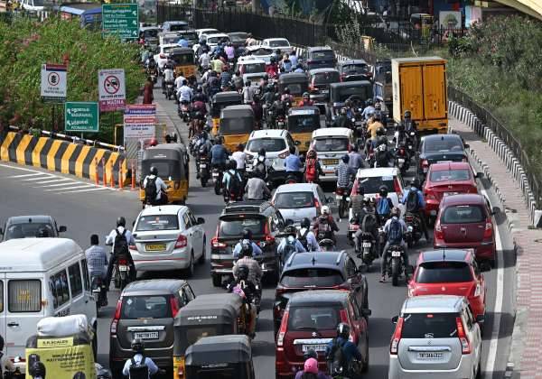 சென்னை கோயம்பேடு 100 அடி சாலையில் பீக் ஹவர் நேரங்களில் போக்குவரத்து நெரிசலில் சிக்கி தவிக்கும் வாகன ஓட்டிகள்.