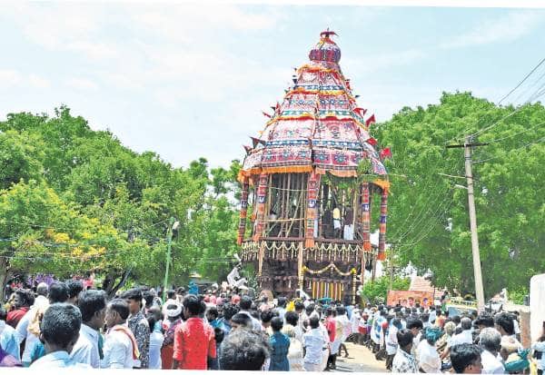 திருப்புத்தூர் ஒன்றியம் திருக்கோளக்குடி திருக்கோளநாதர் கோவில் ஆனிப்பெருந்திருவிழாவை முன்னிட்டு நடந்த தேரோட்டம்