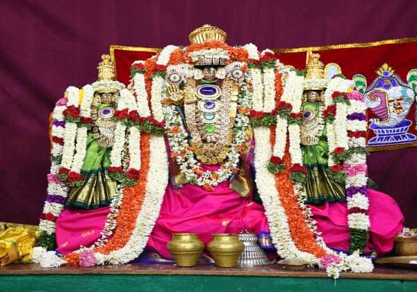 புதுச்சேரி மிஷின் வீதி ஸ்ரீ காலத்தீஸ்வரன் கோயிலில் எழுந்தருவிய ஸ்ரீதேவி பூமிதேவி சமேத ஸ்ரீ வரதராஜ பெருமாள்.