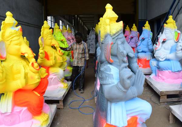 விநாயகர் சதுர்த்தி முன்னிட்டு கோவை சுண்டக்கா முத்தூர் ரோட்டில் விநாயகர் சிலைகள் தயாரிக்கும் பணி தீவிரமாக நடந்து வருகிறது.