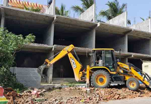 ஆக்கிரமித்து கட்டப்பட்டுள்ள கட்டடம் இடிக்கப்பட்டது. இடம்: தக்கான் குளம் அருகே ராணி்ப்பேட்டை மாவட்டம் சோளிங்கர்.