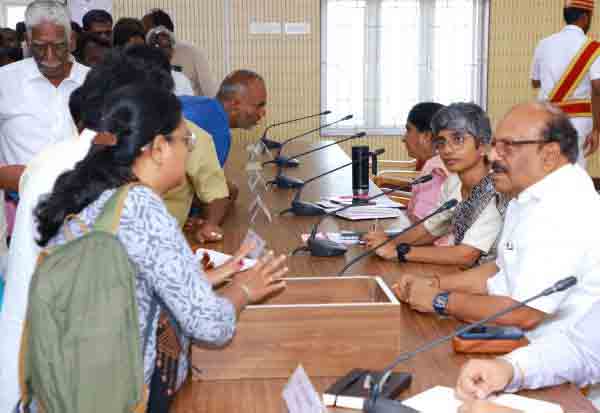 செங்கல்பட்டு கலெக்டர் அலுவலக கூட்ட அரங்கில், உள்ளாட்சி பிரதிநிதிகளுடன் கலந்துரையாடி மனுக்கள் பெறும் நிகழ்ச்சி சிறு, குறு மற்றும் நடுத்தர தொழில் நிறுவனங்கள் துறை அமைச்சர் அன்பரசன் தலைமையில், நடந்தது.