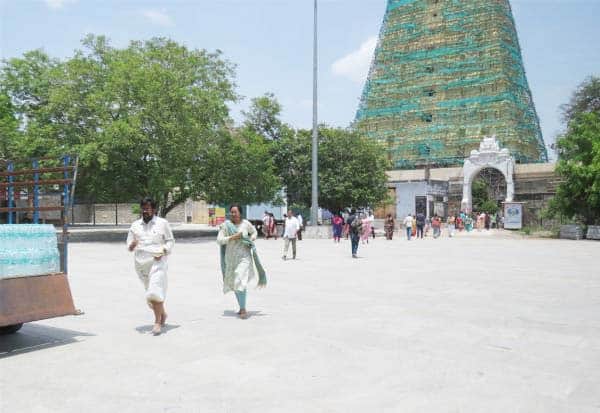காஞ்சிபுரம் ஏகாம்பரநாதர் கோவில் வெளிபிரகார கருங்கல் தரை, வெயிலுக்கு சுட்டெரித்ததால், பக்தர்கள் நடந்து செல்ல முடியாமல் ஓடினர். பிரகாரத்தில், மிதியடி அமைக்க வேண்டும் என, பக்தர்கள் வலியுறுத்தி உள்ளனர்.