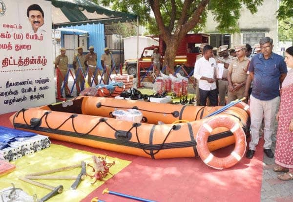 மத்திய அரசின், 'ஆப்தமித்ரா' திட்டத்தின் கீழ், 18 லட்சம் ரூபாய் மதிப்பிலான, 30 வகையான மீட்பு பொருட்களை, தீயணைப்பு துறையினருக்கு, காஞ்சிபுரம் கலெக்டர் கலைச்செல்வி வழங்கினார்.