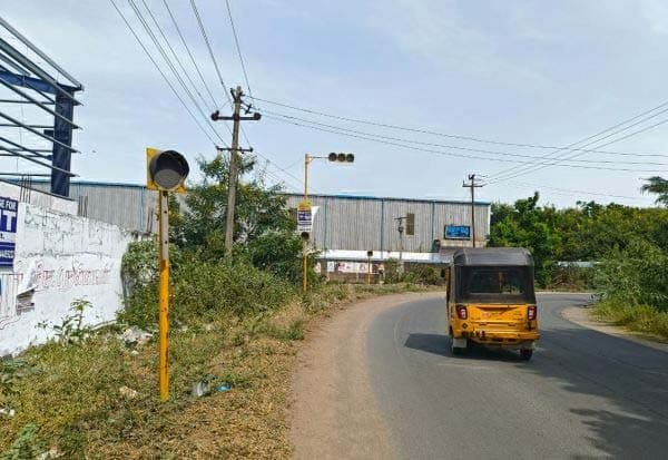 வாகன ஓட்டிகள் அவதிப்படும் வகையில் மருதேரி சாலை வளைவு பகுதியில் எரியாமல் உள்ள சிக்னல்விளக்குகள்.
